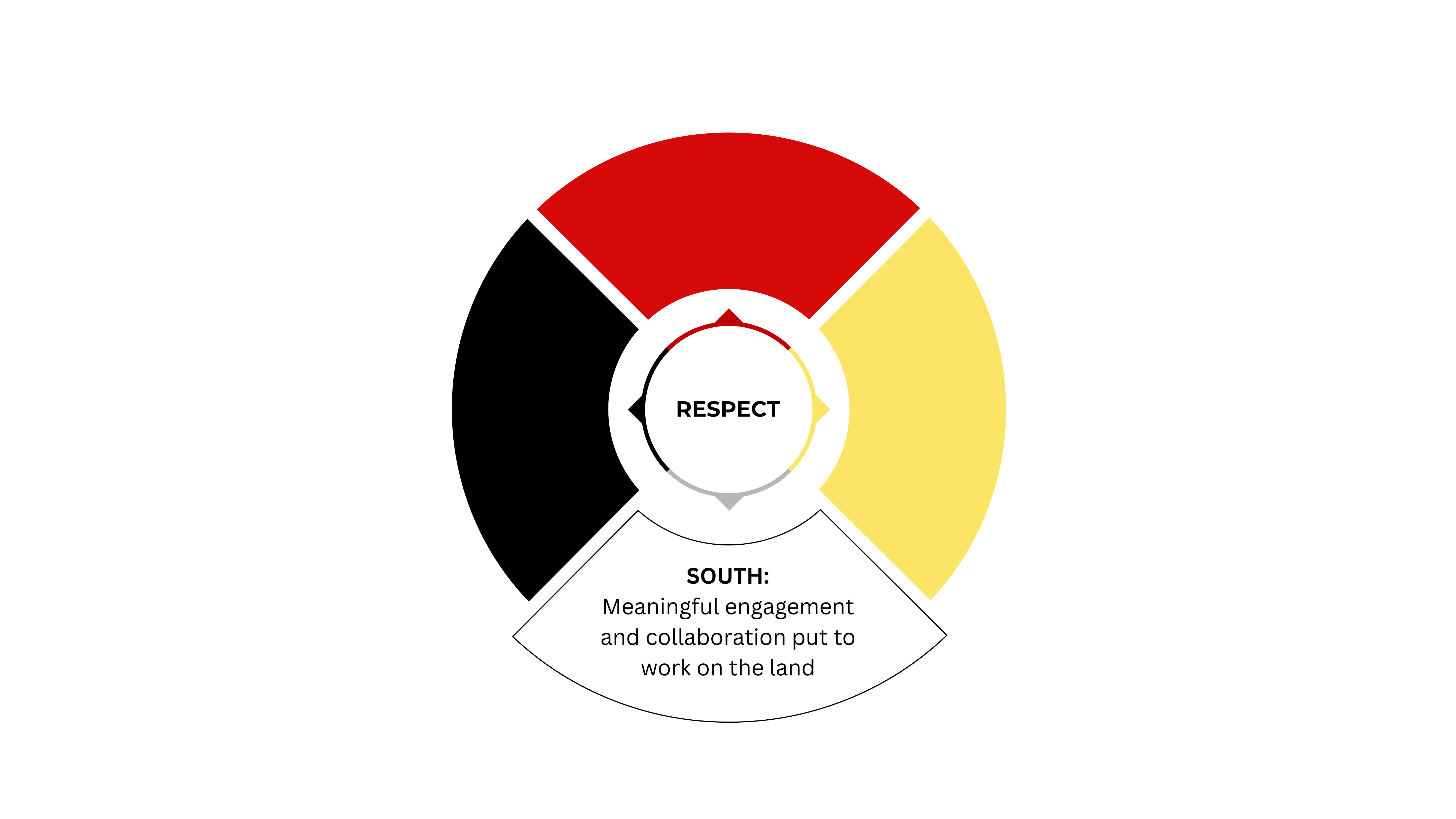 In light of the Truth and Reconciliation Report, Call to Action 93 and our own commitment to working with our Indigenous partners and friends, we have developed an Engagement Approach founded in our four key pillars. These pillars represent our commitment to Indigenous reconciliation and building respectful, trust-based relationships with our Indigenous partners. Each pillar represents a different aspect of our commitment to Indigenous peoples to support Mother Earth and bring new opportunities to Indigenous communities where we live and work. At the heart of our approach is the central principle of Respect. Respect for the Rights of Indigenous Peoples. Respect for each other and the environment. Respect for Indigenous environmental knowledge that has been accumulated since time immemorial. As well as Respect for the belief that by braiding Indigenous Wisdom and Western knowledge together, we can achieve culturally informed and sustainable approaches to restoring the environment for future generations.